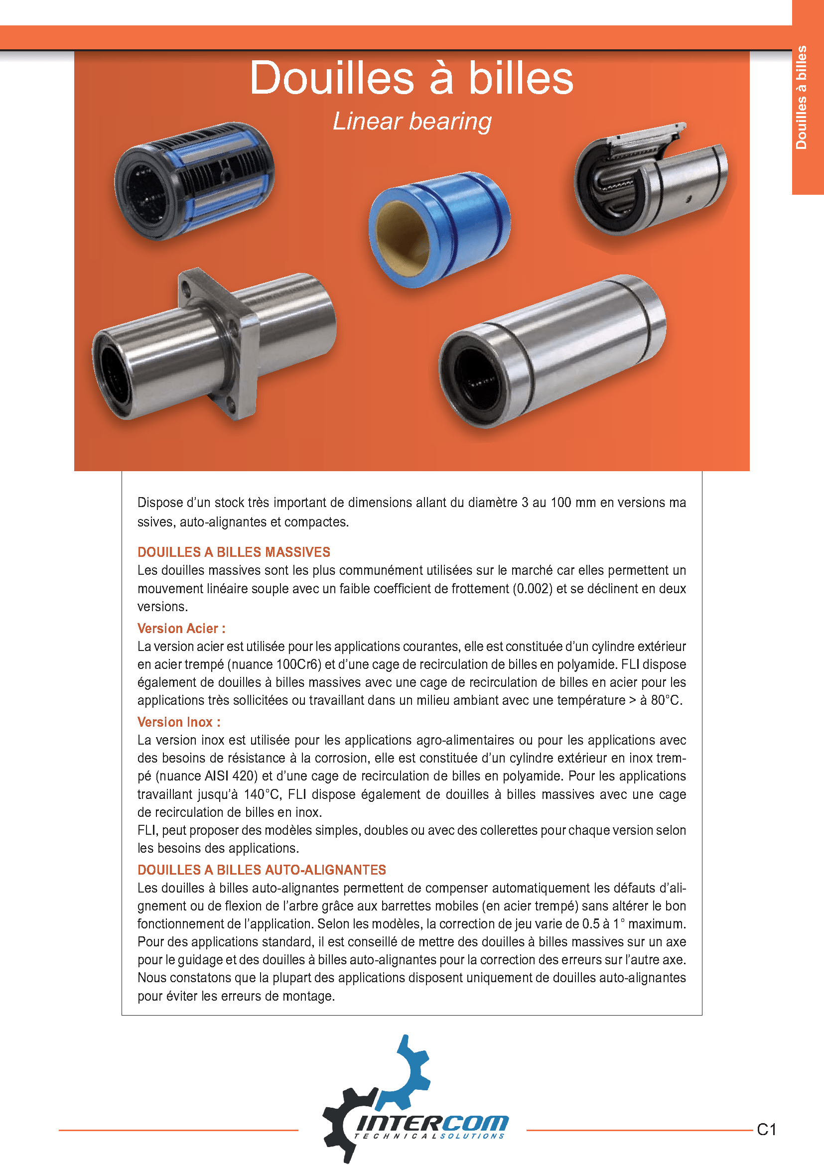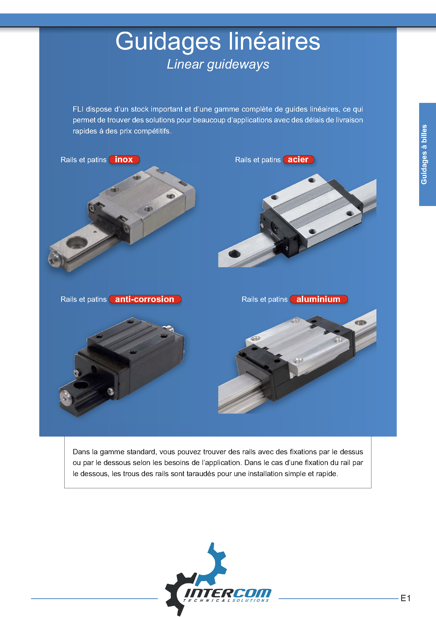 France linear industrie Gredi Vodilne gredi Linearni ležaji Linearna ohišja Navojna vretena Vretena in ohišja Kroglična vretena Trapezna vretena Linearne mize Linearna vodila Zaokrožena vodila Pritrditve za cilindre Linearni vozički Aluminijasti vozički Kroglični vozički Vpenjalni elementi Podporni ležaji